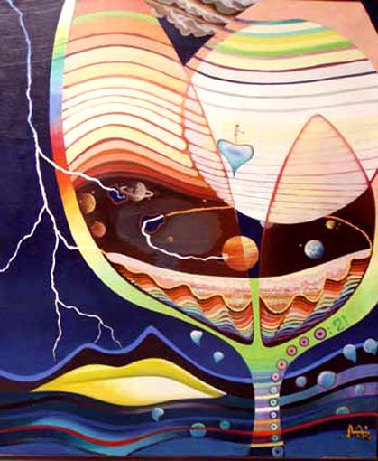 Extraterrestrische Reigen (Eitempera Harzöllasur auf Leinwand, 120 x 100 cm) 1977