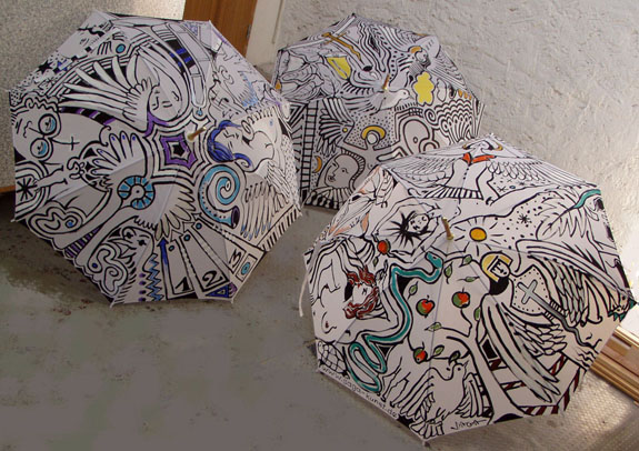 Paradiesbilder. Gemeinschaftsarbeiten mit balinesischen Künstlern. (Acryl auf Segeltuch / Leinwand, 180 x 120 cm, 1993 / 1995